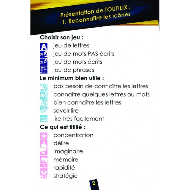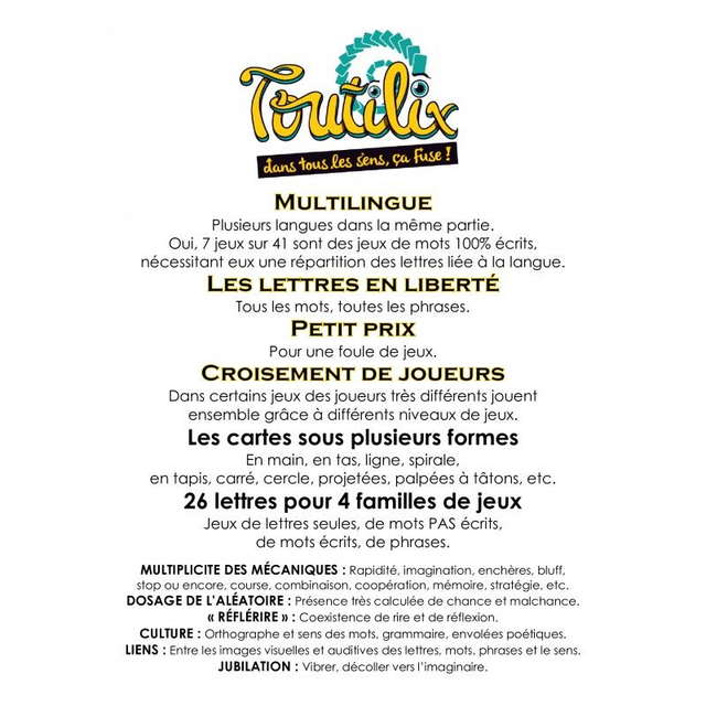 Toutilix 2020 - Livret, cartes, boîte, site tout a été amélioré ! 110 cartes : pétards, étoiles, lettres. Cartes d'aide.